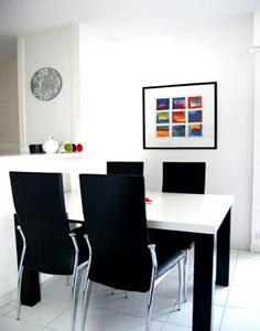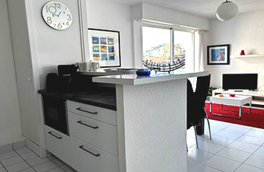Aménagement : Entrée avec penderie. Coin cuisine avec plan de travail, séparée par un meuble bar. Plaque vitro céramique, four, micro-ondes, frigo congélateur, lave vaisselle, hotte aspirante. Séjour salon, téléviseur écran plat 80 cm. Baie vitrée avec volet roulant. Terrasse avec salon de jardin. Appareils ménagers divers (cafetière électrique, grill pain, appareil à raclette, auto cuiseur, moulin à légumes, fer, planche à repasser, aspirateur...) Chambre : Lit de 2 personnes 160x200 (bonne literie), 2 chevets. Traversins, oreillers, couvertures, couette. Placard. Porte fenêtre vitrée avec volet roulant. Salle de bain : Baignoire avec pare douche, vasque, sèche cheveux, Emplacement parking privé. Local à vélos et planches à voiles. Mise à dispositions de dépliants et de brochures d'informations locales. Plan de l'appartement. Plage de la Grève Blanche,face à la résidence. Accès direct privé à la plage de sable fin sans route à traverser. Baignade à toute heure de la marée. Chéques vacances acceptés. |